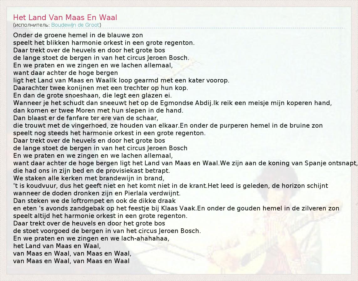 А как ты думаешь, о чем песня "Het Land Van Maas En Waal" ?