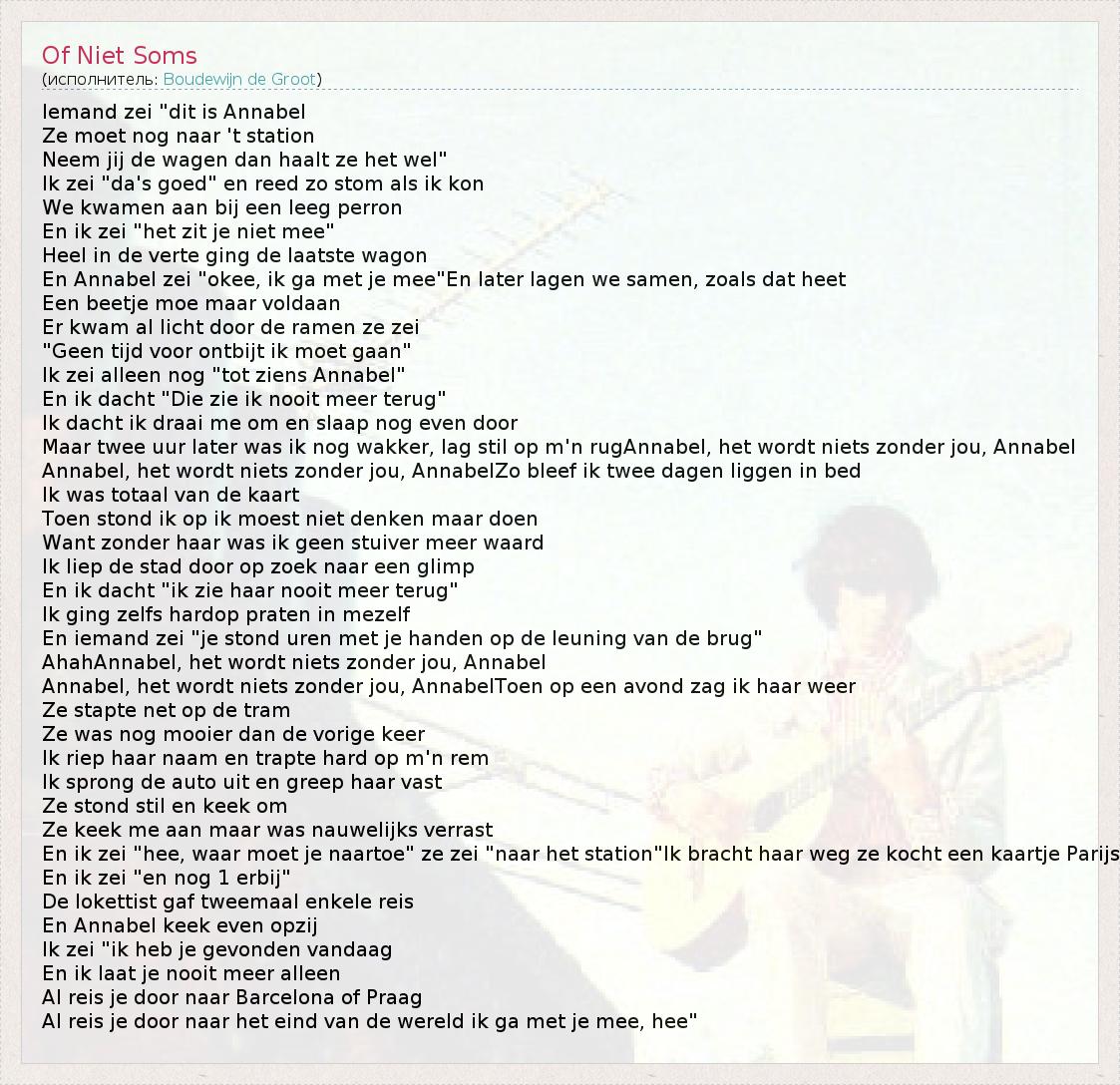 А как ты думаешь, о чем песня "Of Niet Soms" ?