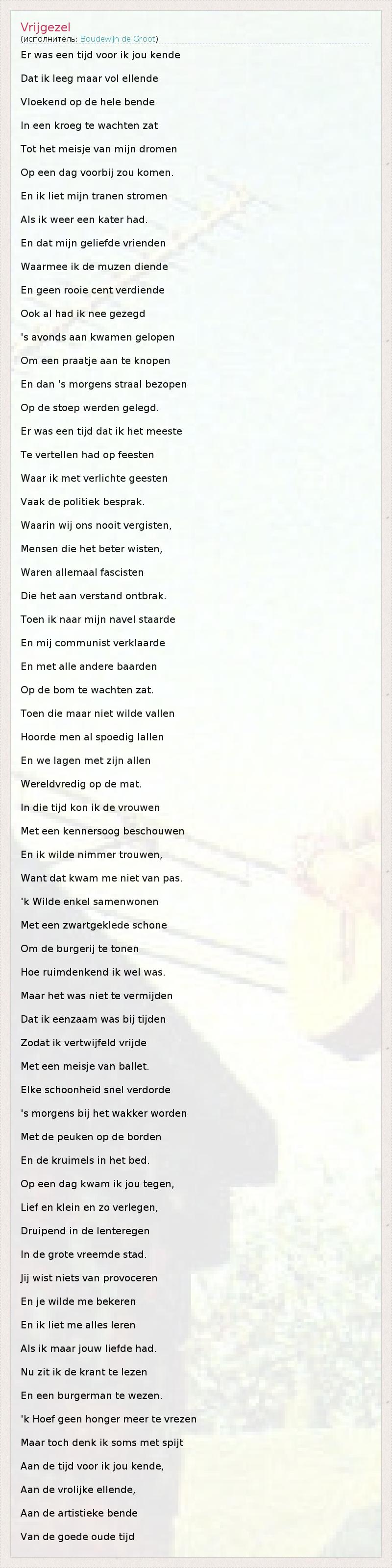 А как ты думаешь, о чем песня "Vrijgezel" ?