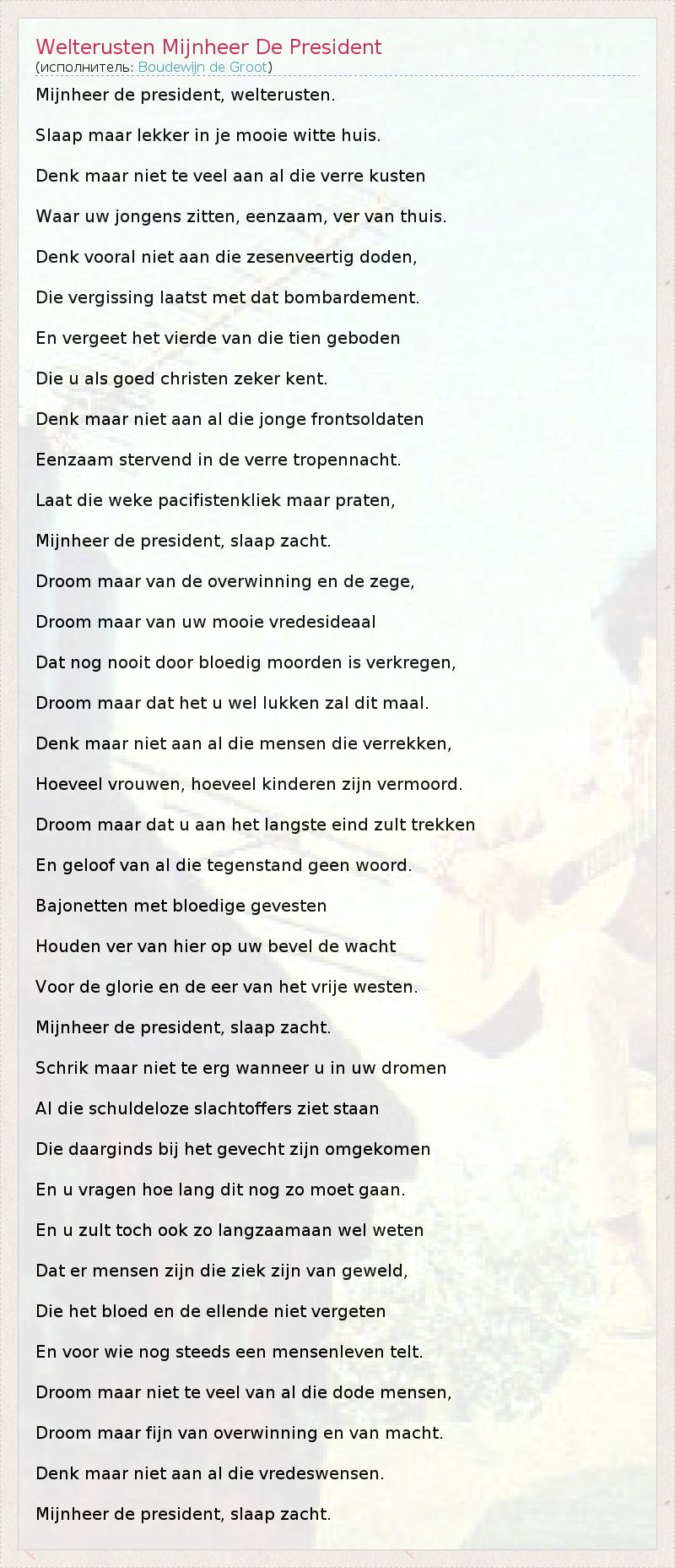 А как ты думаешь, о чем песня "Welterusten Mijnheer De President" ?