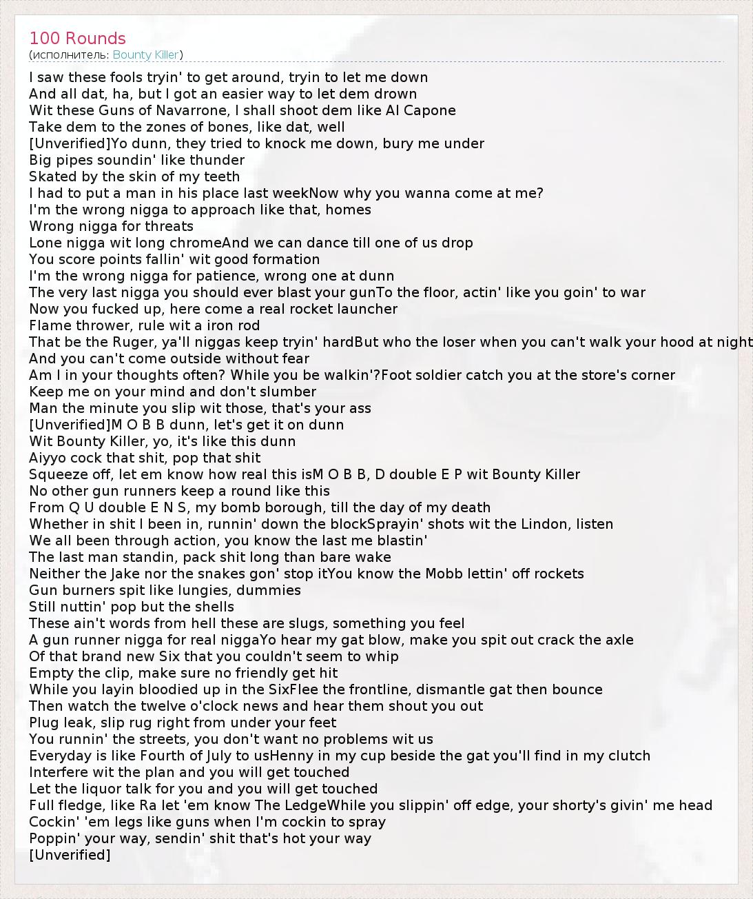 А как ты думаешь, о чем песня "100 Rounds" ?