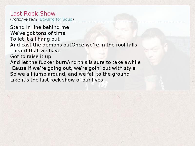 А как ты думаешь, о чем песня "Last Rock Show" ?