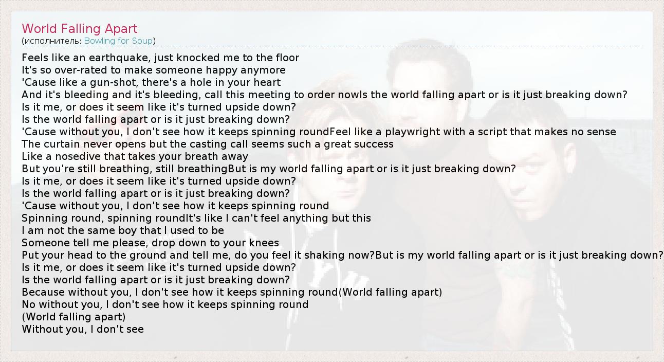 А как ты думаешь, о чем песня "World Falling Apart" ?