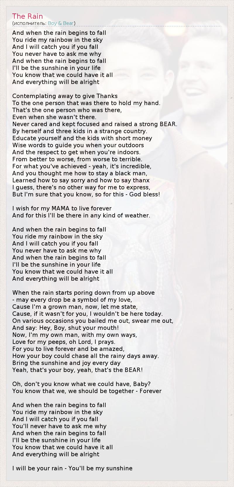 А как ты думаешь, о чем песня "The Rain" ?