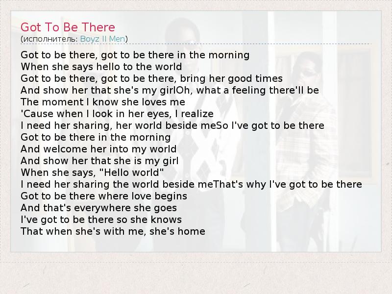 Got to be there, got to be there in the morning