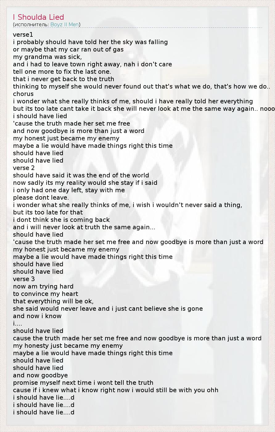 А как ты думаешь, о чем песня "I Shoulda Lied" ?