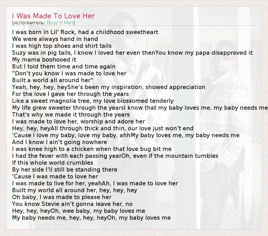 А как ты думаешь, о чем песня "I Was Made To Love Her" ?