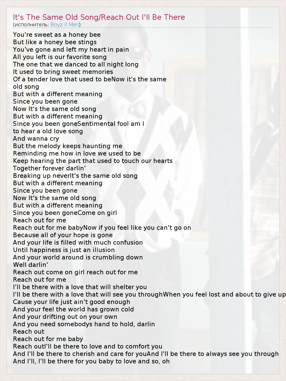 А как ты думаешь, о чем песня "It's The Same Old Song/Reach Out I'll Be There" ?