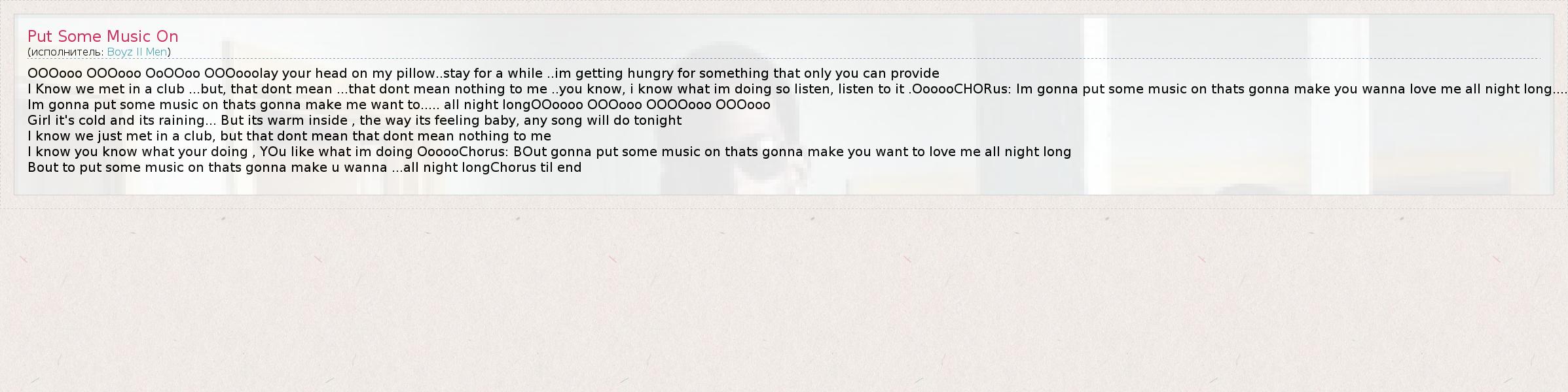 А как ты думаешь, о чем песня "Put Some Music On" ?
