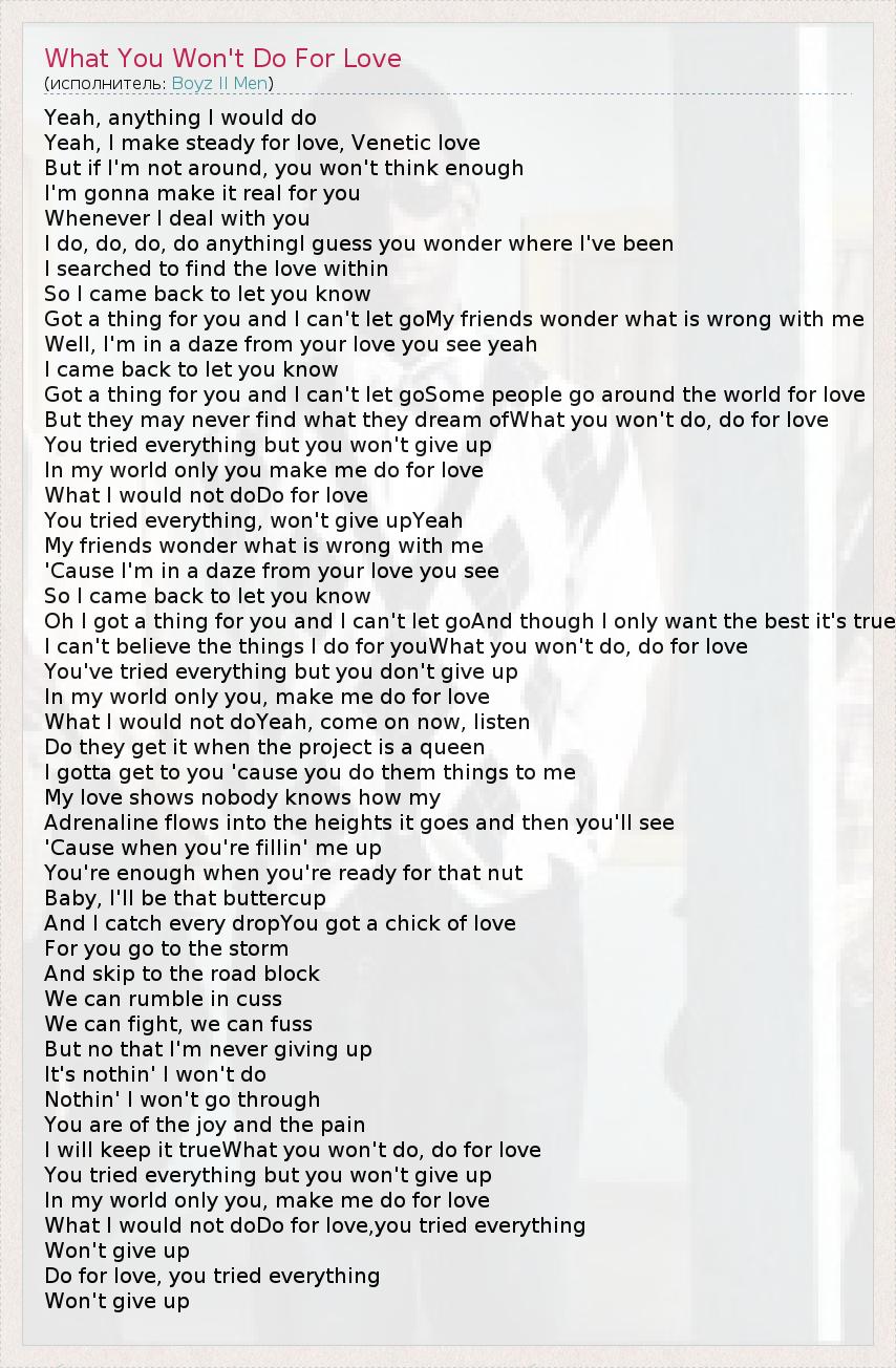 А как ты думаешь, о чем песня "What You Won't Do For Love" ?
