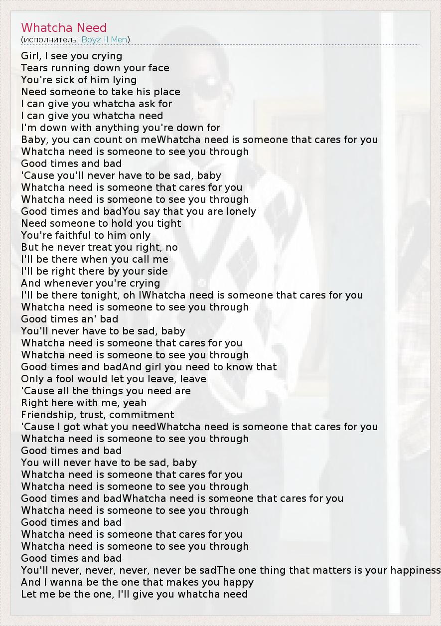 А как ты думаешь, о чем песня "Whatcha Need" ?