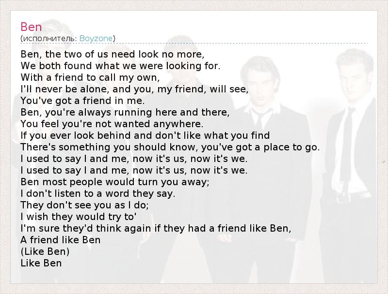 Это интересно:Boyzone — ирландская мальчиковая поп-группа (бой-бэнд) 1990-х, которая в течение своего семилетнего существования (1993—2000) продала 15 млн. записей и шесть раз возглавляла национальный хит-парад Великобритании.Впервые ребята возглавили чарты после распада своих основных конкурентов, Take That, осенью 1996 г. — с кавер-версией баллады Bee Gees «Words». Два года спустя выпустили свою самую успешную запись... продолжение