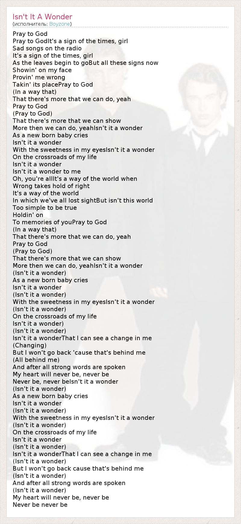 А как ты думаешь, о чем песня "Isn't It A Wonder" ?