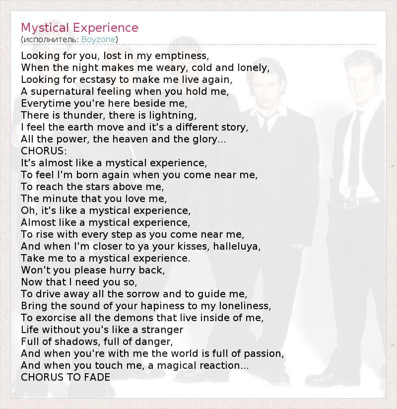 А как ты думаешь, о чем песня "Mystical Experience" ?