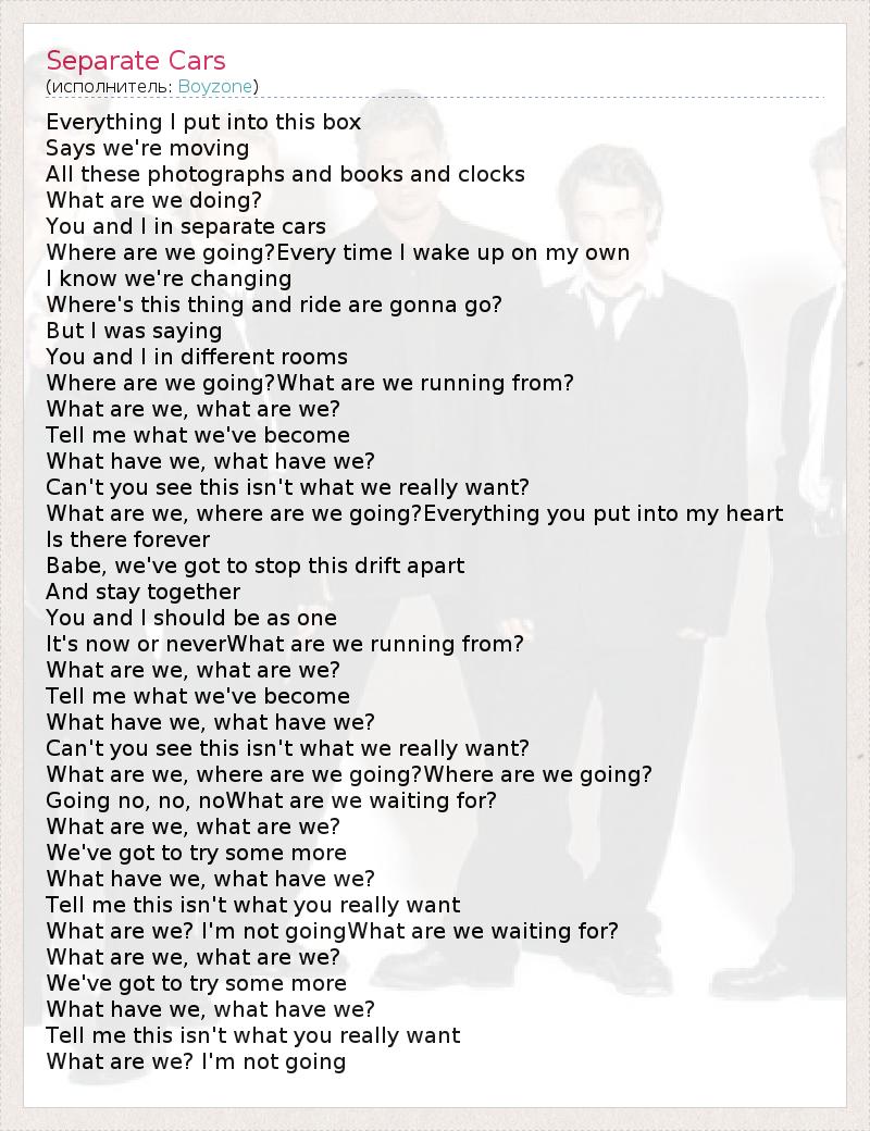 А как ты думаешь, о чем песня "Separate Cars" ?