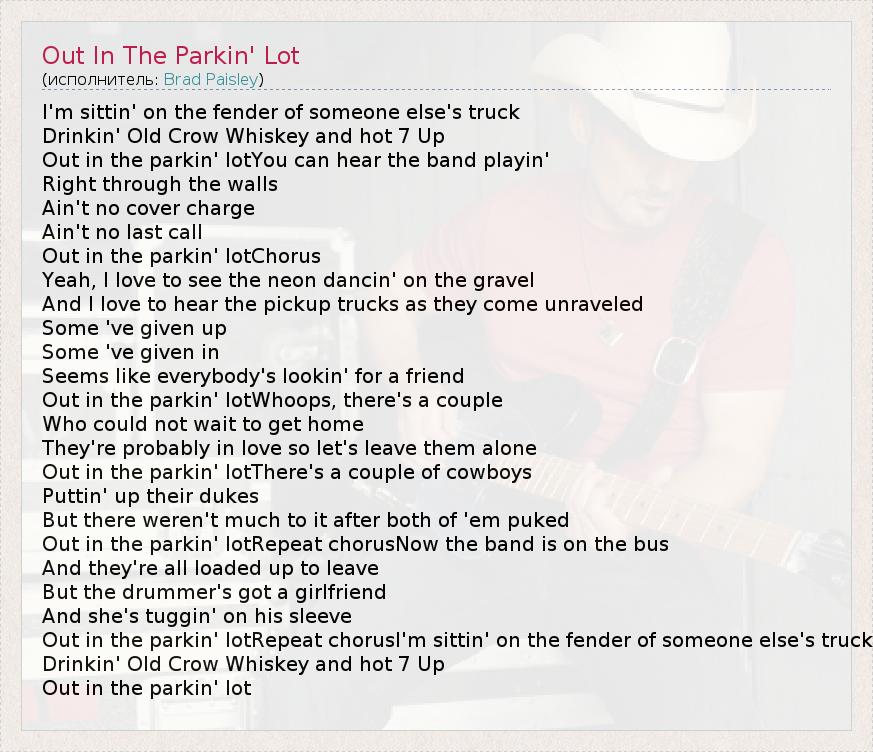 А как ты думаешь, о чем песня "Out In The Parkin' Lot" ?
