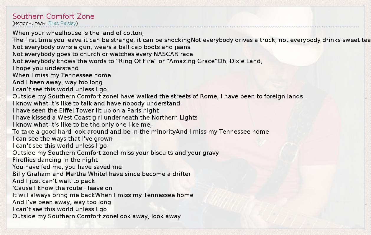 А как ты думаешь, о чем песня "Southern Comfort Zone" ?