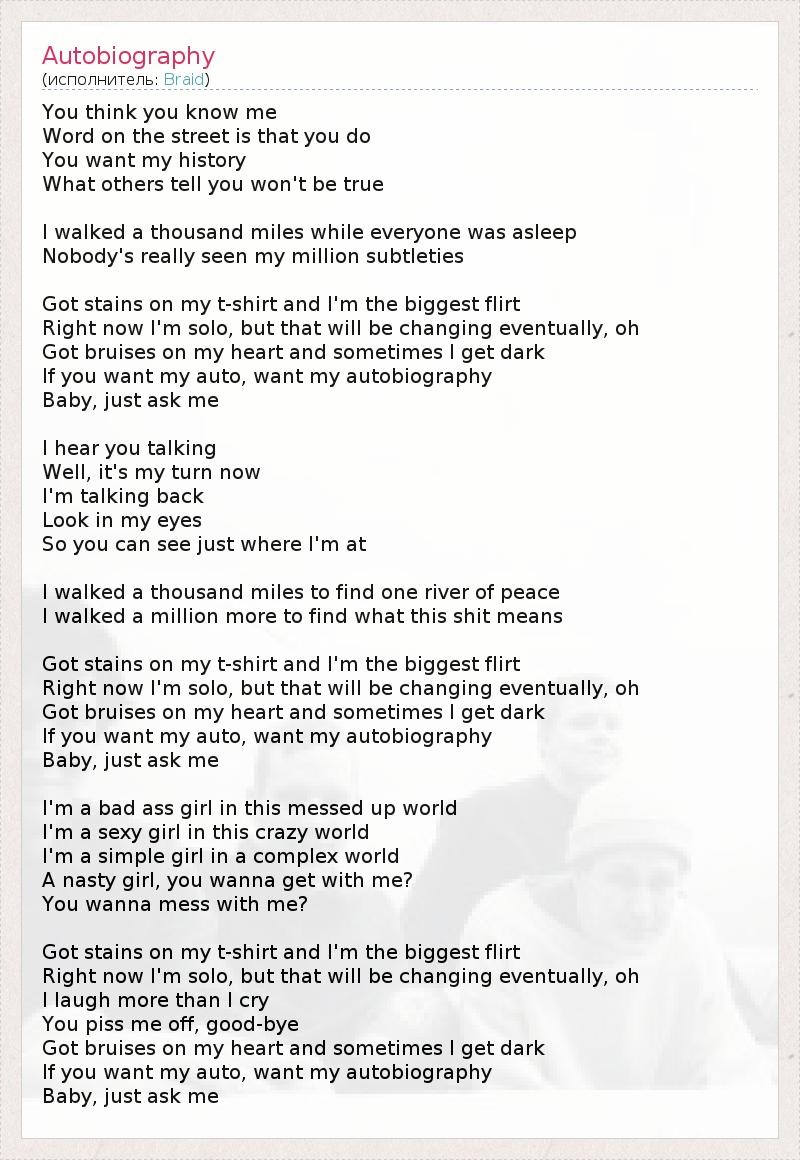 А как ты думаешь, о чем песня "Autobiography" ?