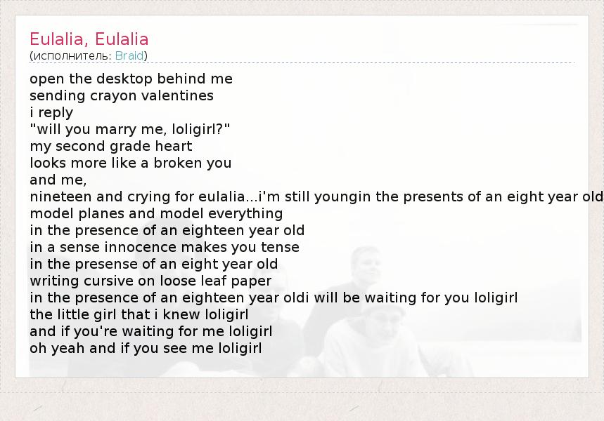 А как ты думаешь, о чем песня "Eulalia, Eulalia" ?