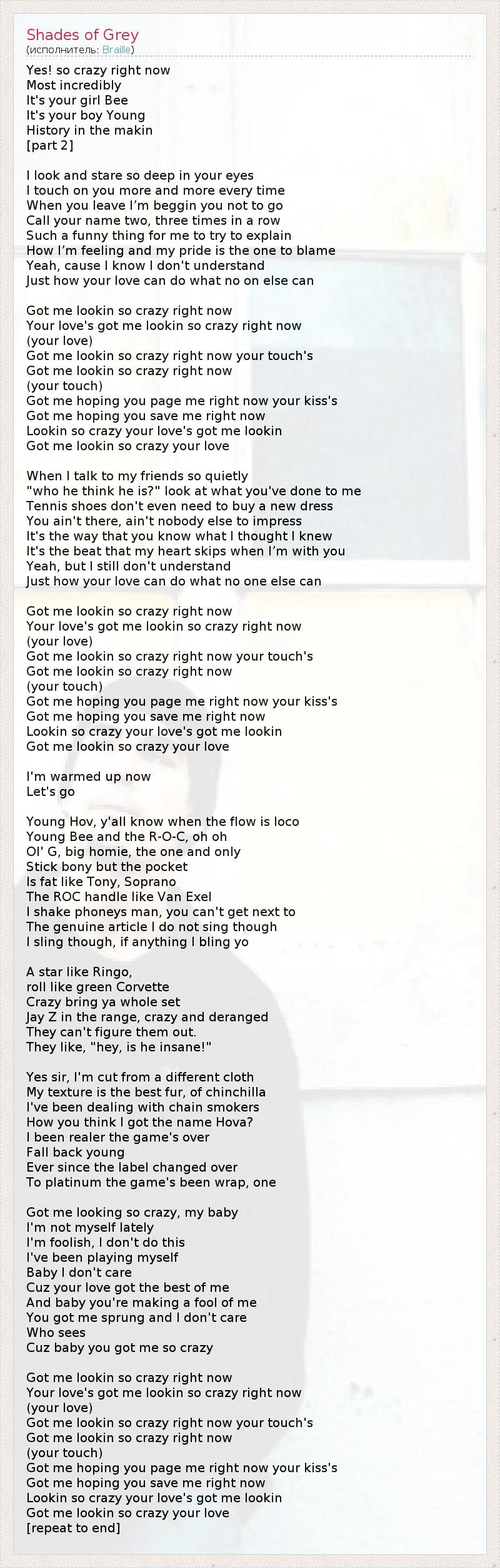 А как ты думаешь, о чем песня "Shades of Grey" ?