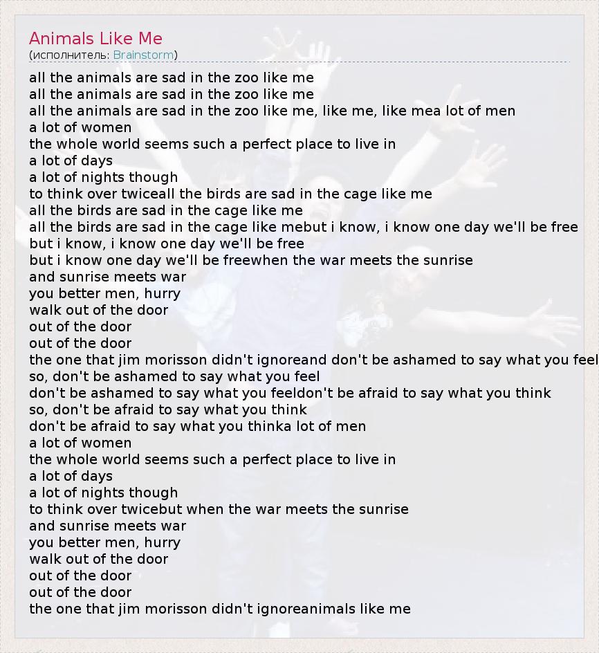 А как ты думаешь, о чем песня "Animals Like Me" ?