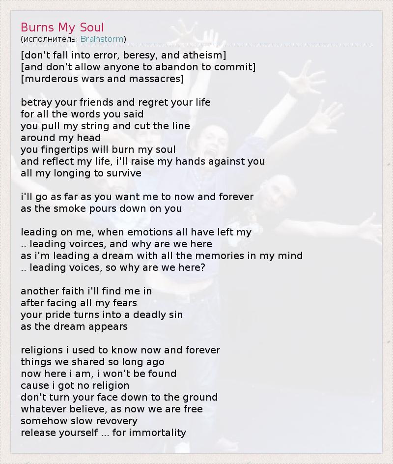 А как ты думаешь, о чем песня "Burns My Soul" ?