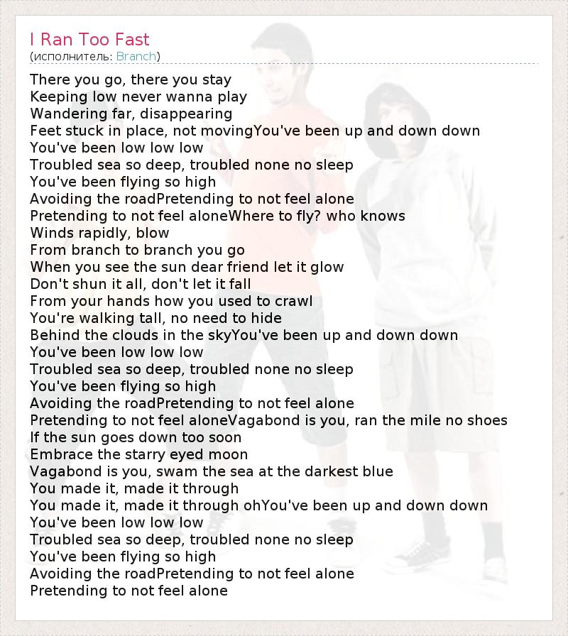 А как ты думаешь, о чем песня "I Ran Too Fast" ?