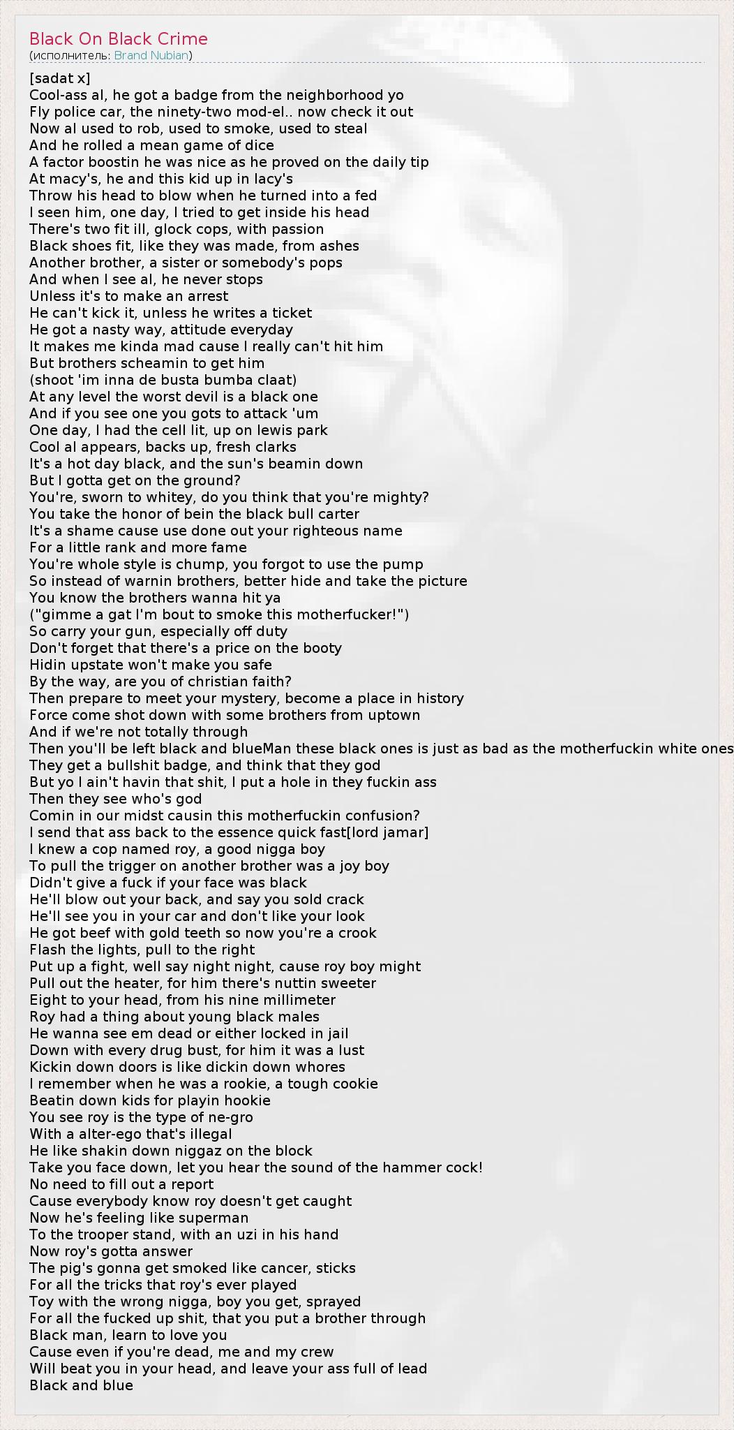 А как ты думаешь, о чем песня "Black On Black Crime" ?