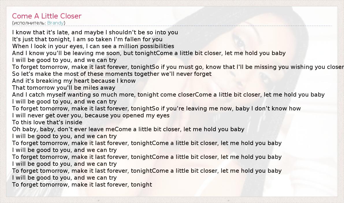 ГлавнаяИсполнителиBrandyCome A Little Closer