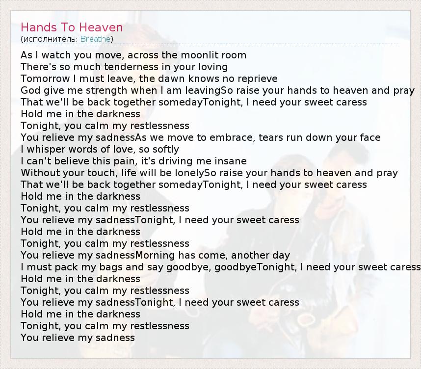 А как ты думаешь, о чем песня "Hands To Heaven" ?