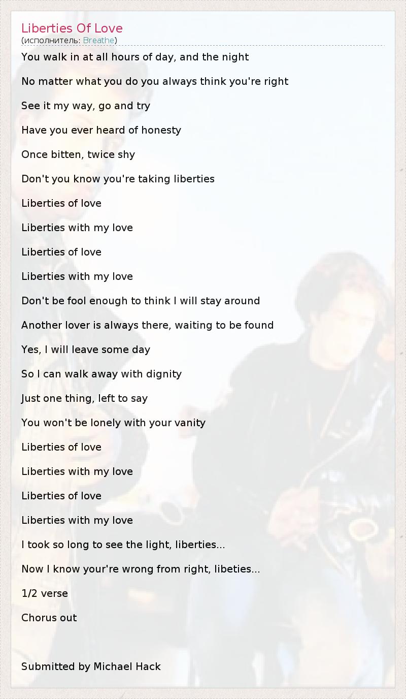 А как ты думаешь, о чем песня "Liberties Of Love" ?