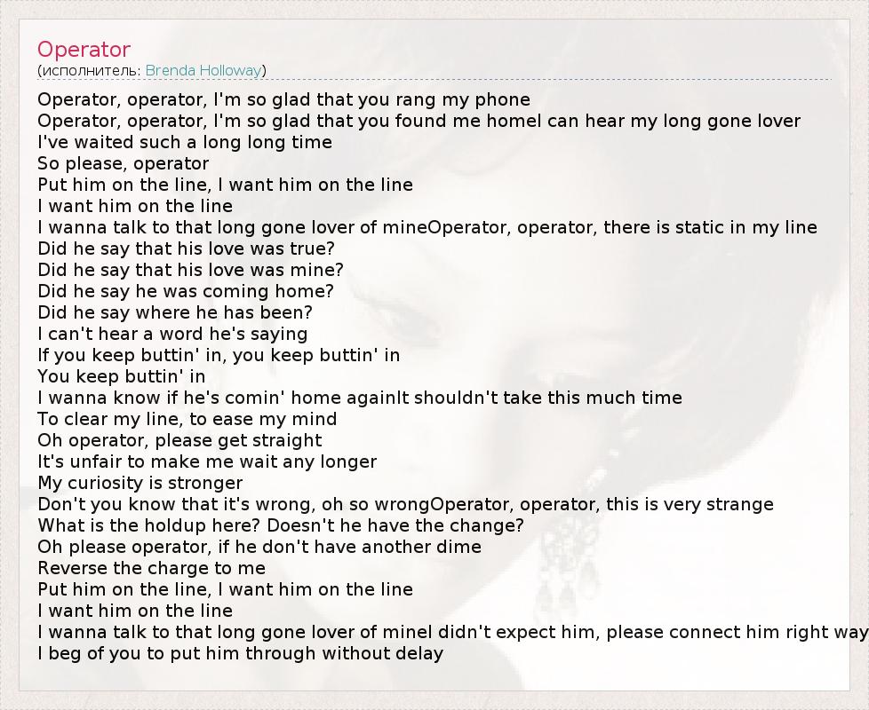 А как ты думаешь, о чем песня "Operator" ?