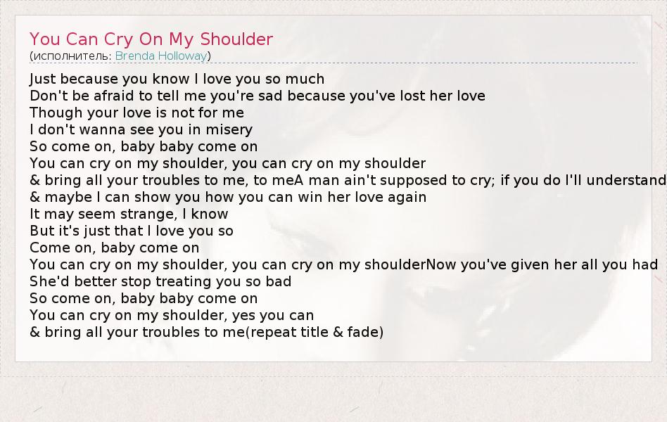 А как ты думаешь, о чем песня "You Can Cry On My Shoulder" ?