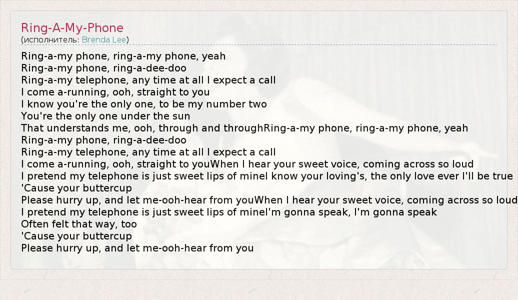 А как ты думаешь, о чем песня "Ring-A-My-Phone" ?