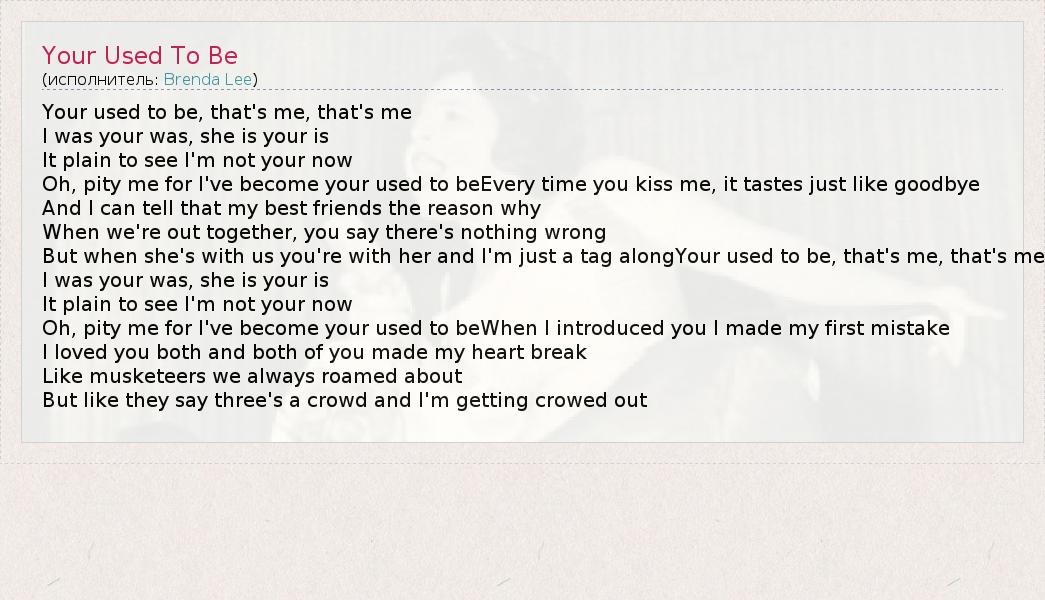 А как ты думаешь, о чем песня "Your Used To Be" ?