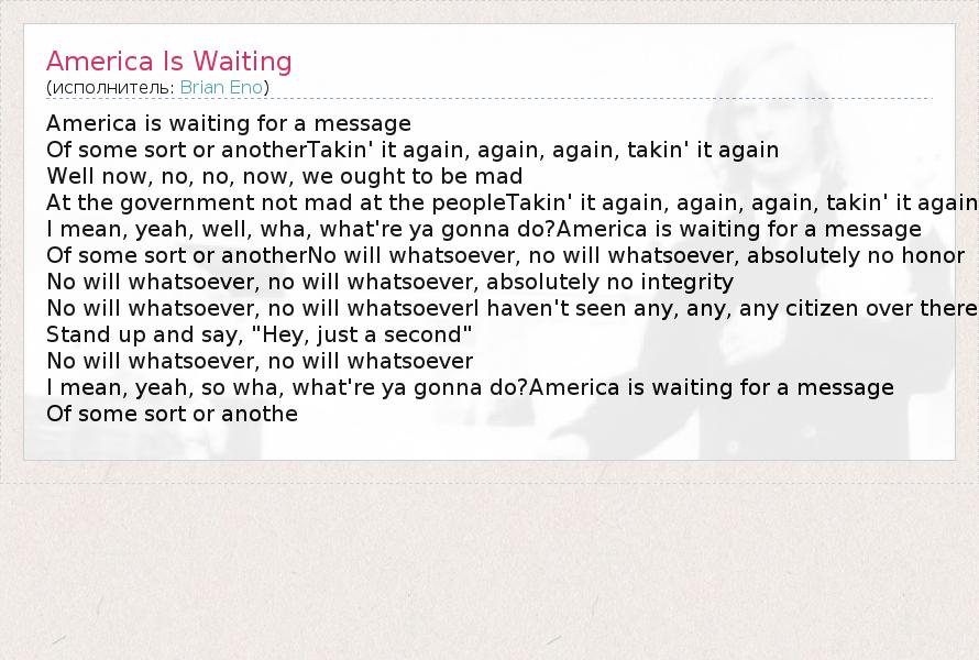 А как ты думаешь, о чем песня "America Is Waiting" ?