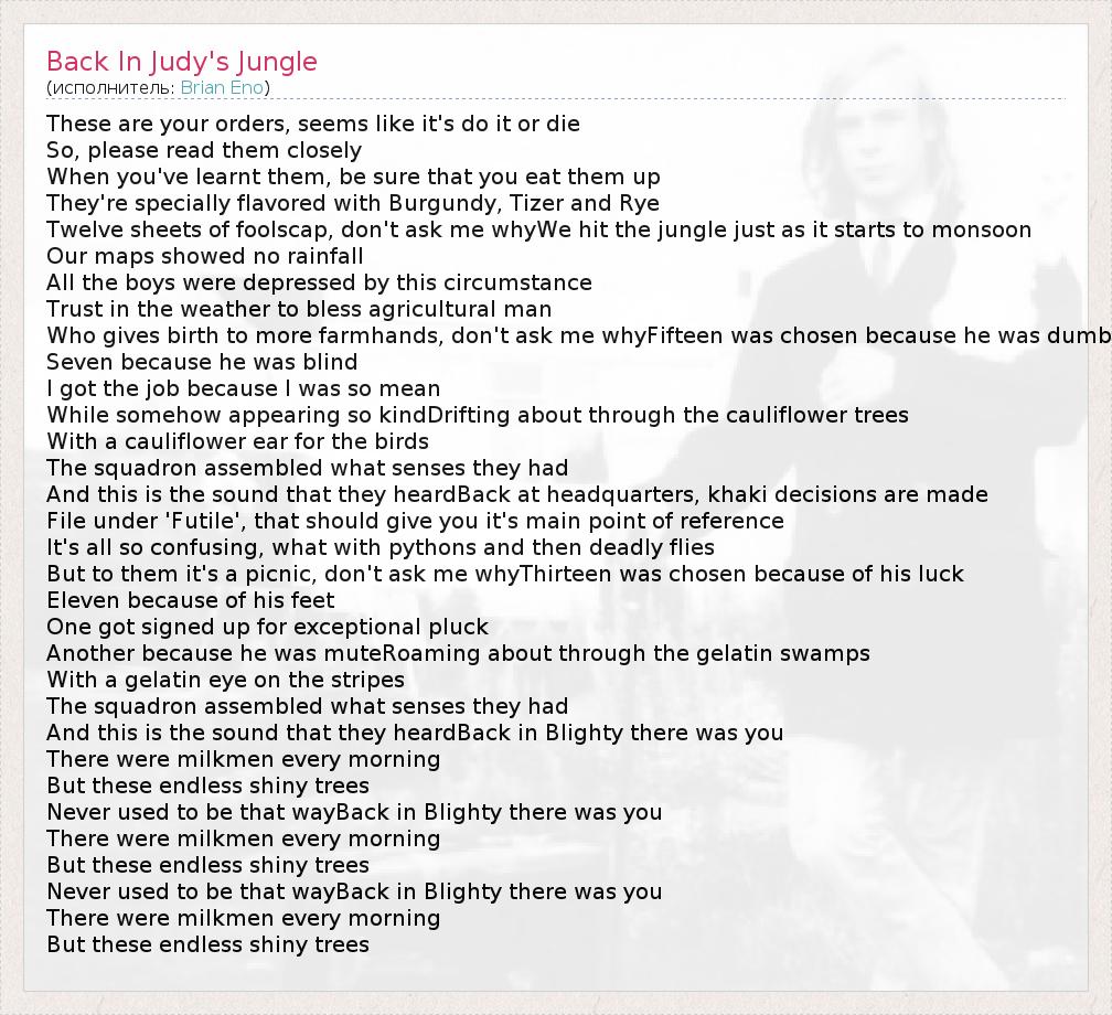 А как ты думаешь, о чем песня "Back In Judy's Jungle" ?