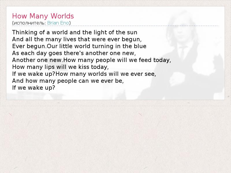 А как ты думаешь, о чем песня "How Many Worlds" ?