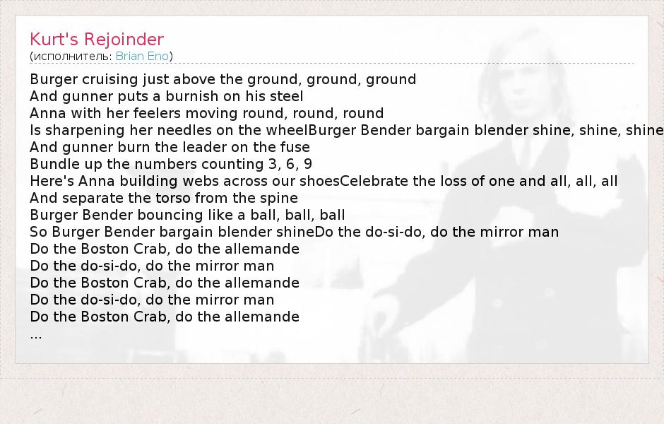 А как ты думаешь, о чем песня "Kurt's Rejoinder" ?