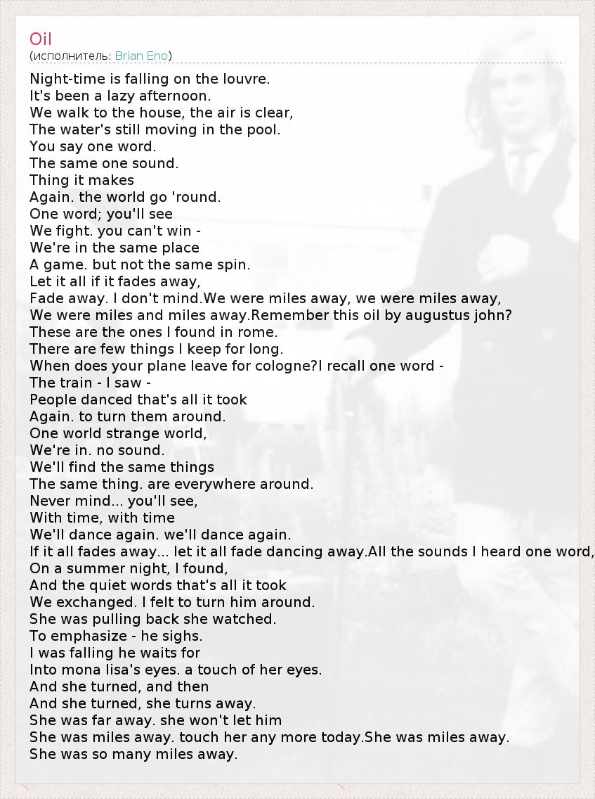 If it all fades away... let it all fade dancing away.All the sounds I heard	one word,