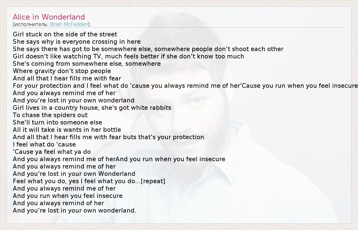 А как ты думаешь, о чем песня "Alice in Wonderland" ?
