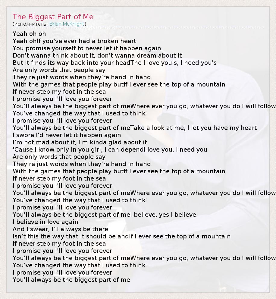 А как ты думаешь, о чем песня "The Biggest Part of Me" ?