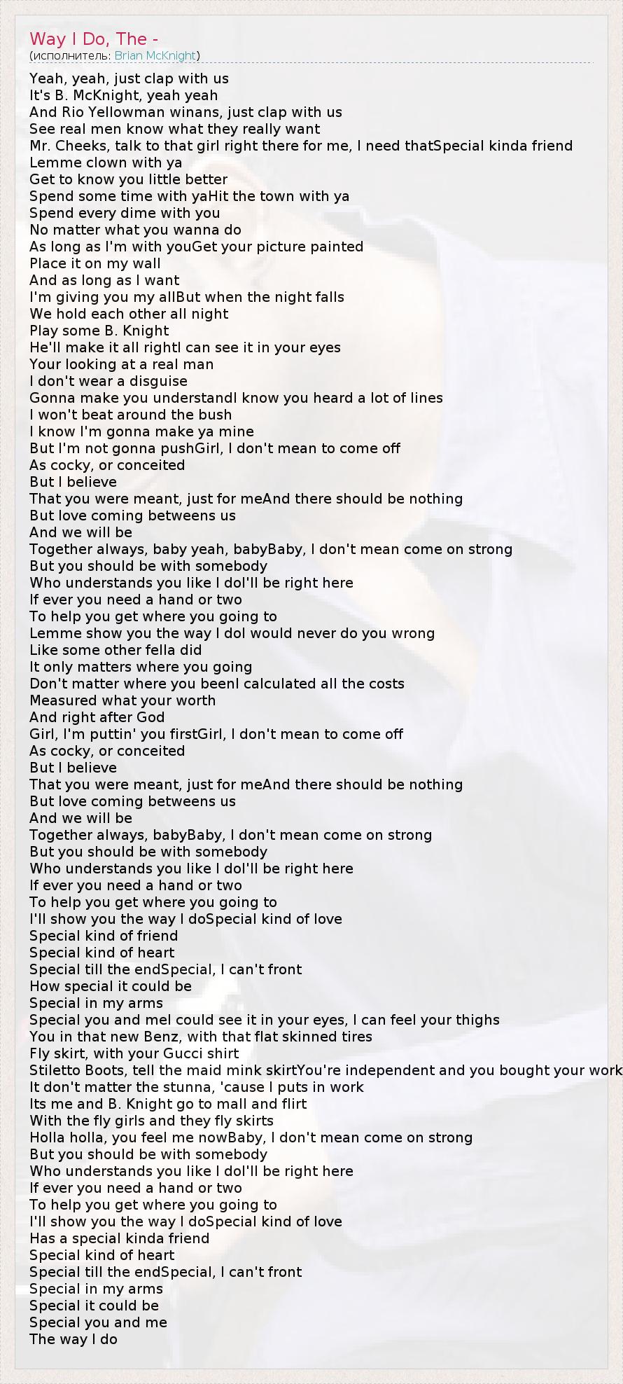 А как ты думаешь, о чем песня "Way I Do, The -" ?
