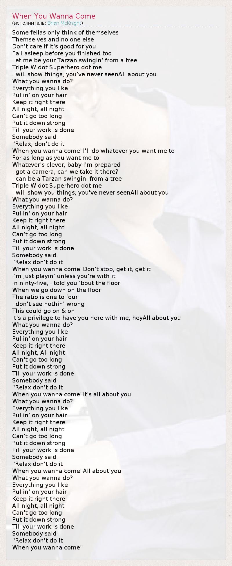 А как ты думаешь, о чем песня "When You Wanna Come" ?