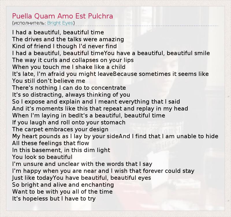 А как ты думаешь, о чем песня "Puella Quam Amo Est Pulchra" ?