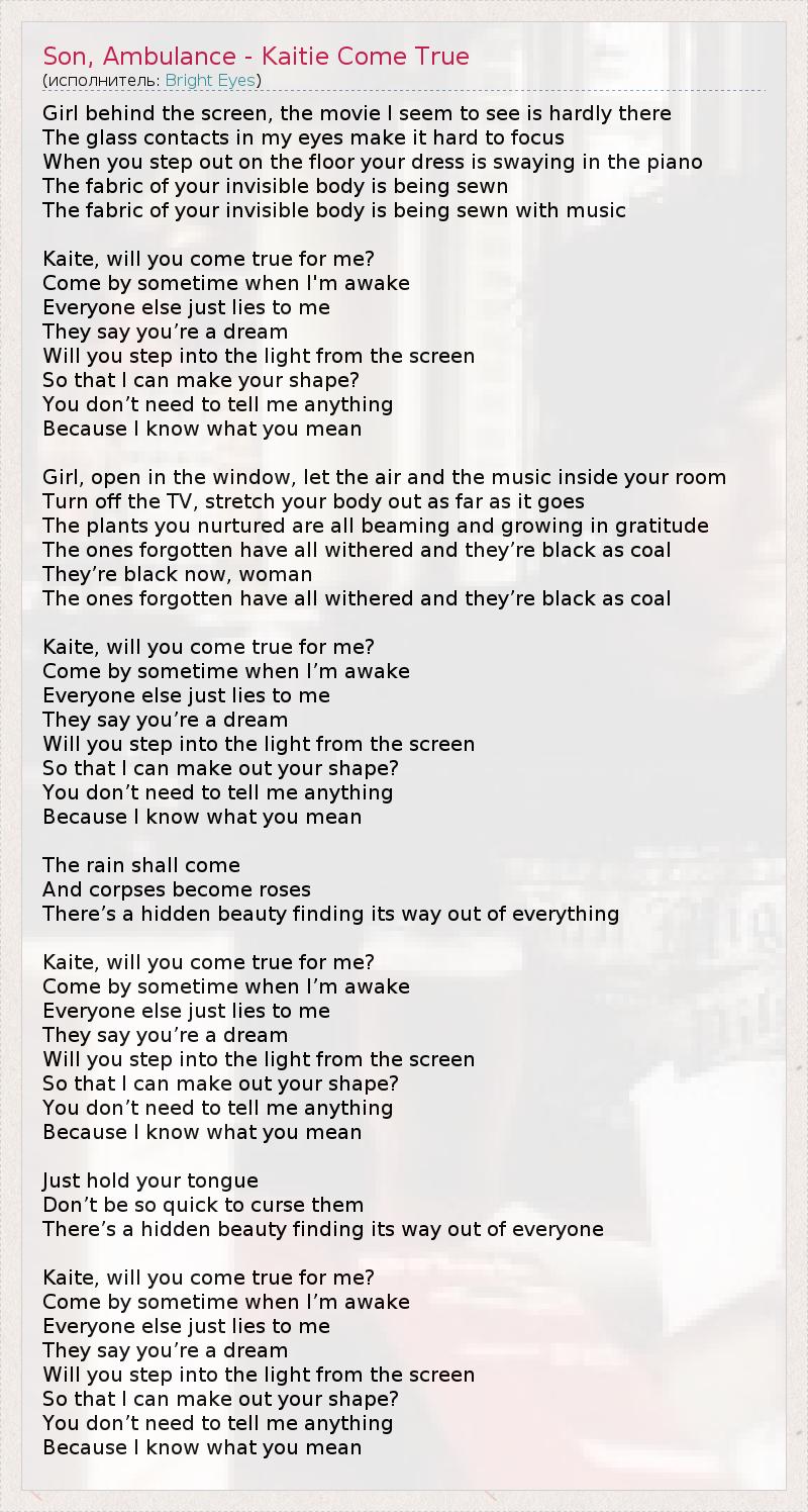 ГлавнаяИсполнителиBright EyesSon, Ambulance - Kaitie Come True