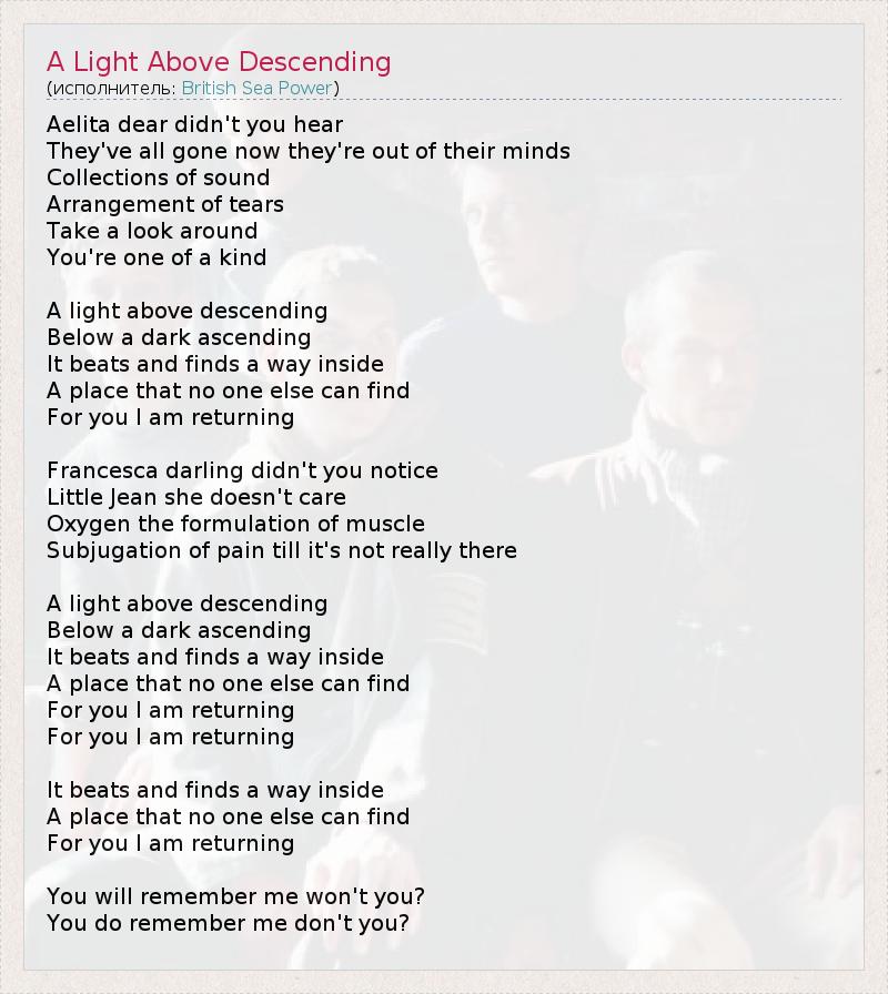 А как ты думаешь, о чем песня "A Light Above Descending" ?