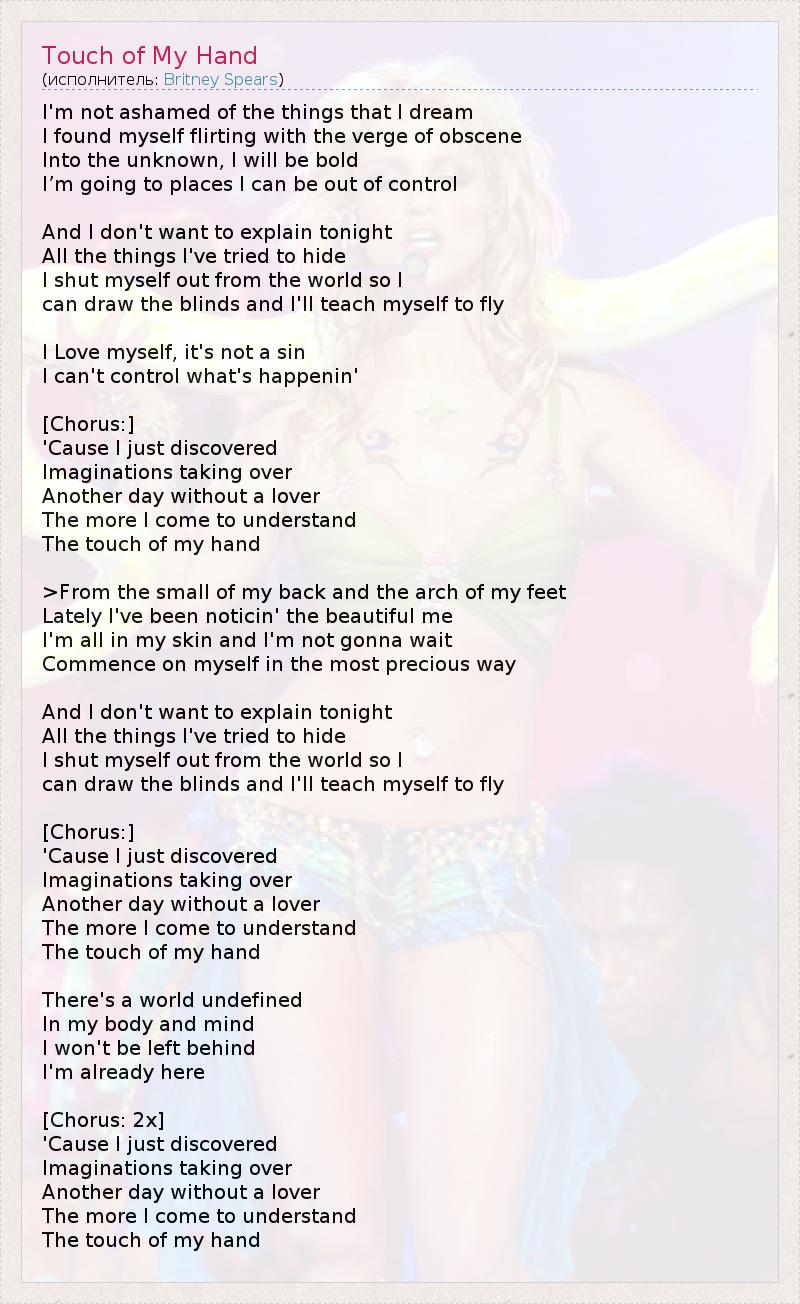 А как ты думаешь, о чем песня "Touch of My Hand" ?
