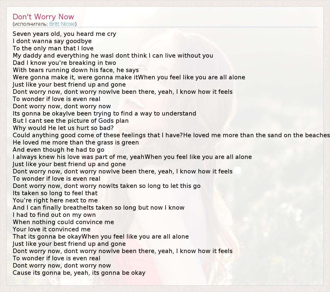 Dont worry now, dont worry now