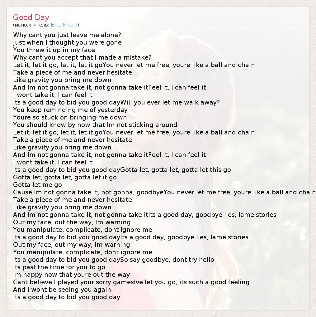 Its a good day to bid you good dayGotta let, gotta let, gotta let this go